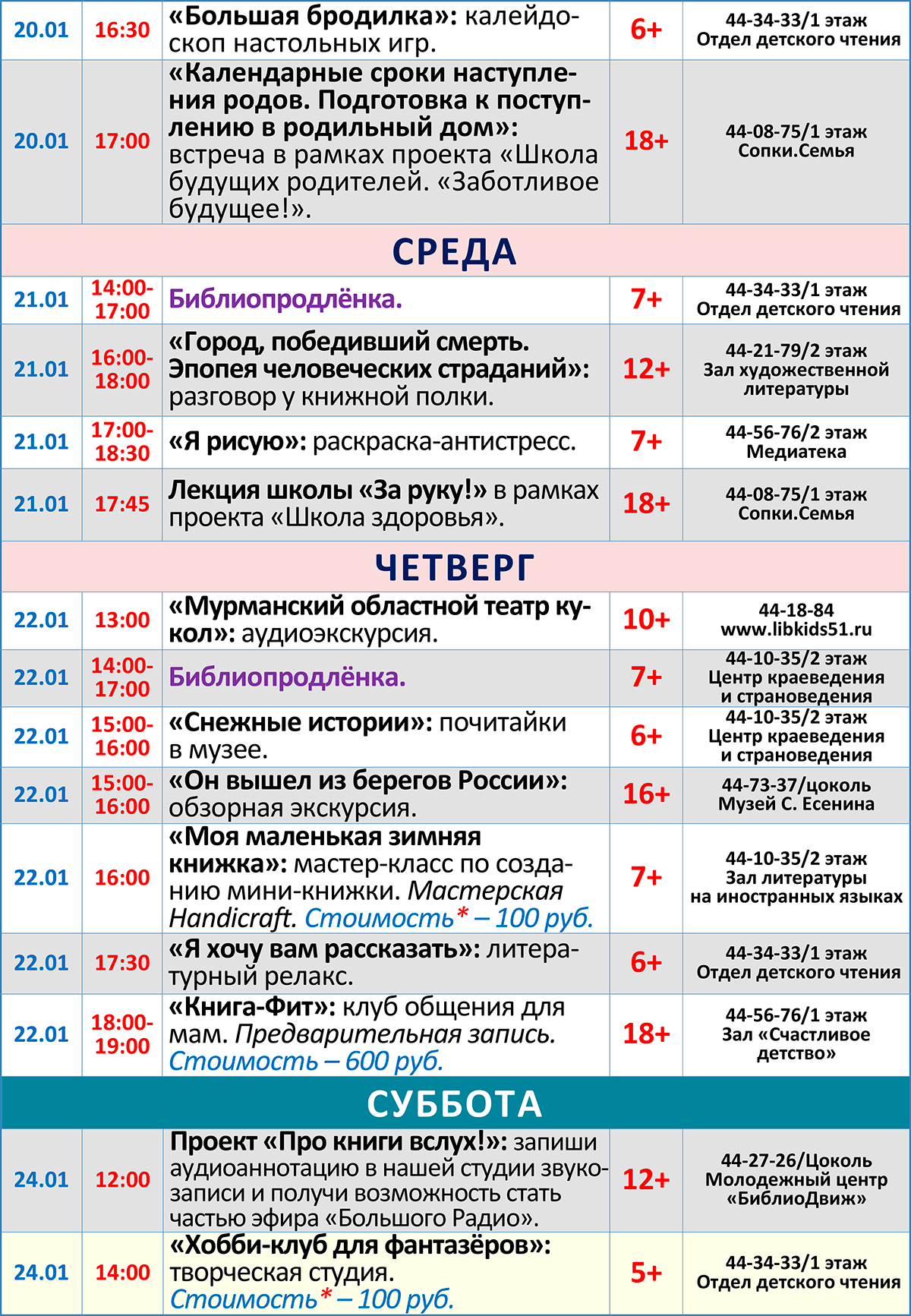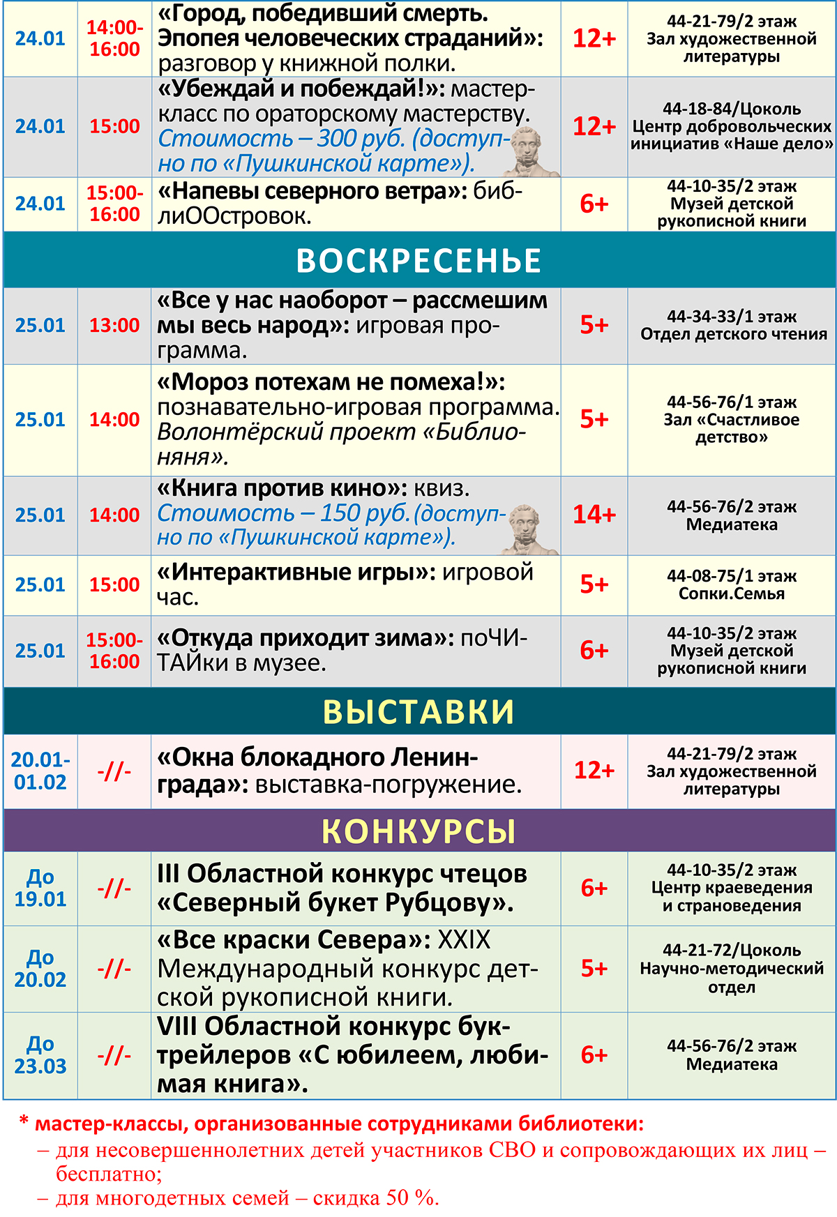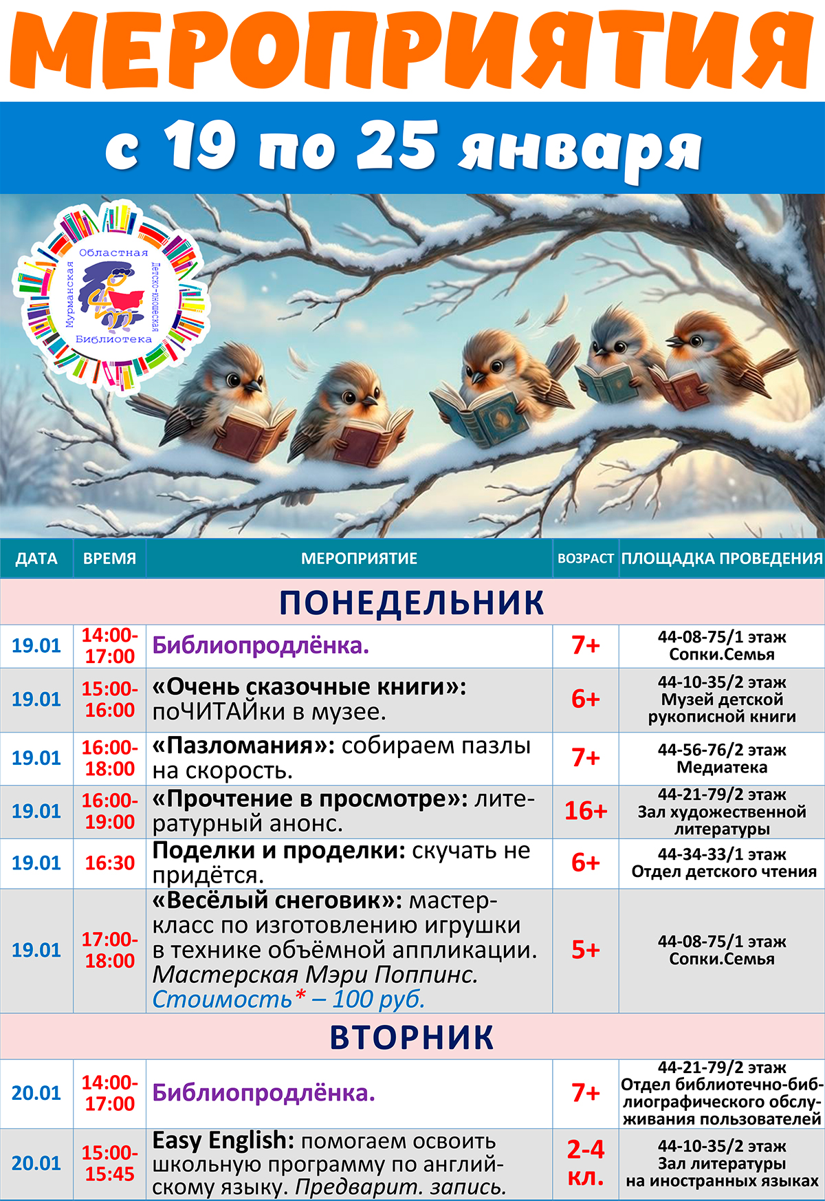 Дорогие читатели, знакомьтесь с афишей мероприятий, которые подготовила для вас областная детско-юношеская библиотека с 19 по 25 января