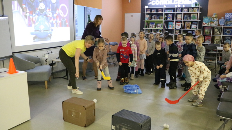 Воспитанники детских садов №93 и №83 разгадывали загадки о популярных зимних видах спорта, все вместе договаривали пословицы о спортивном образе жизни, узнавали интересные факты о спортивных дисциплинах, которые проводятся на льду и на снегу. Дружно, активно и с удовольствием участвовали в играх, конкурсах и эстафетах: «Что нужно спортсмену?», «Найди пару», «Лыжные гонки» и «Хоккей».