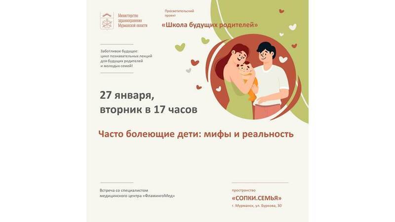 27 января в 17:00 проект «Школа будущих родителей. Заботливое будущее!» приглашает обсудить тему здоровья детей!