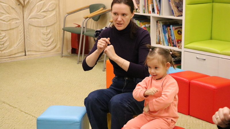 Звонкий колокольчик собрал самых маленьких читателей и их родителей в дружный хоровод, чтобы познакомиться и поиграть.