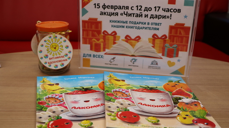 В акции активно принимали участие читатели библиотеки, частные книгодарители. Татьяна Морозова, врач-офтальмолог из Москвы и детский писатель, прислала библиотеке 40 экземпляров своей новой книги «Лакомка». Произведение призвано помочь мамам накормить послушных и не совсем послушных малышей. Книга вышла в 2025 году в г. Владимире в издательстве «Почемучка» в серии «Доктора – детям».