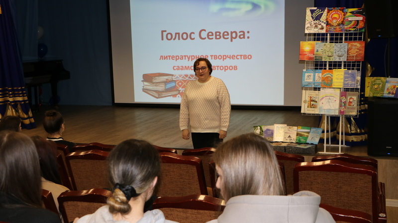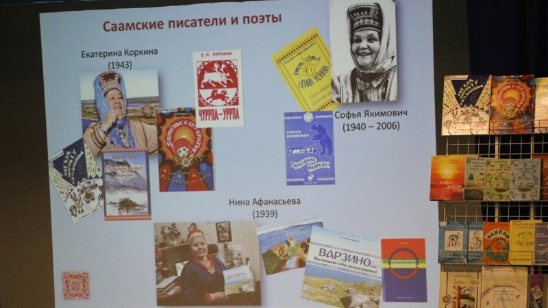 Библиотекарь центра краеведения и страноведения представила яркие имена саамской литературы: Октябрину Воронову, Аскольда Бажанова, Александру Антонову, Ираиду Виноградову, Надежду Большакову и других талантливых авторов.