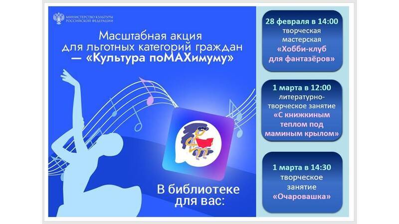 В детско-юношеской библиотеке в рамках акции «Культура по MAXимуму» для многодетных семей предусмотрена скидка 50 % на творческие мероприятия выходных дней: