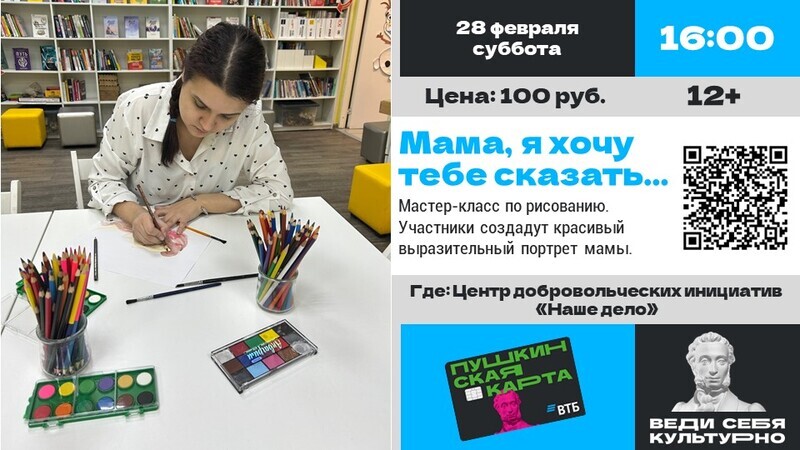 Каждый сможет выразить благодарность и самые теплые чувства маме через искусство живописи. Участники научатся создавать красивый выразительный портрет самого близкого человека и смогут подарить своим мамам яркие эмоции и уникальные картины, созданные своими руками.