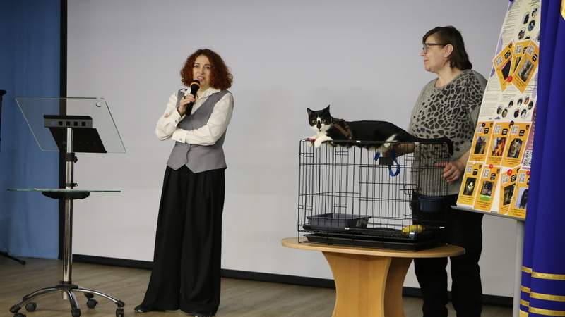 В уютном мультимедийном зале библиотеки собрались многочисленные поклонники усатых-полосатых питомцев — взрослые и дети. Со сцены выступила специалист фонда Инна Куликова, она рассказала собравшимся о тонкостях содержания домашних любимцев и важности ответственного отношения к животным.