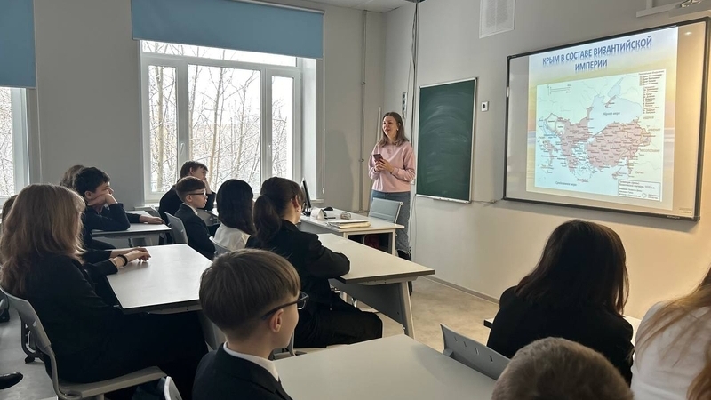 Сотрудник Молодёжного центра «БиблиоДвиж» Мурманской областной детско-юношеской библиотеки провела для шестиклассников лицея №2 тематическое мероприятие «Крым. Сюжеты о прошлом и будущем». Главный акцент встречи был сделан на погружение лицеистов в богатую и древнюю историю полуострова.