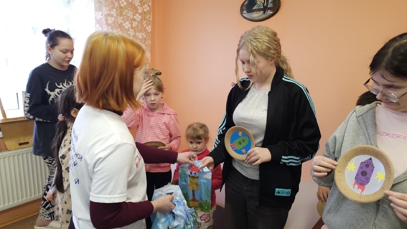 В проведении мастер-класса помогала волонтёр Центра добровольческих инициатив «Наше дело» Татьяна Васильева. В рамках участия в конкурсе «Студент года» она подготовила для ребят памятные подарки.