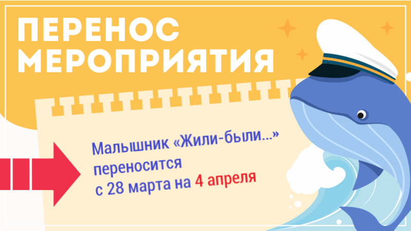 Обращаем ваше внимание – Малышник «Жили-были…», запланированный на 28 марта в 12:00, переносится на 4 апреля в 12:00.
