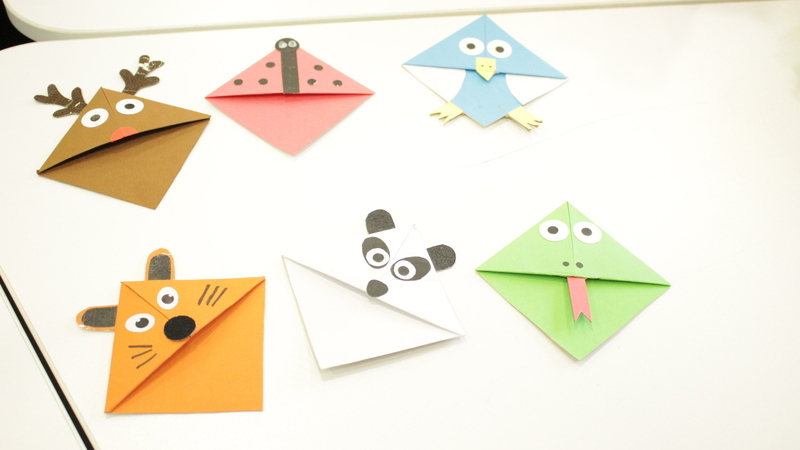 Сначала смастерили основу для закладки в технике оригами, а затем добавили своей поделке индивидуальные черты: глазки, носики, ушки, рога, лапки…
