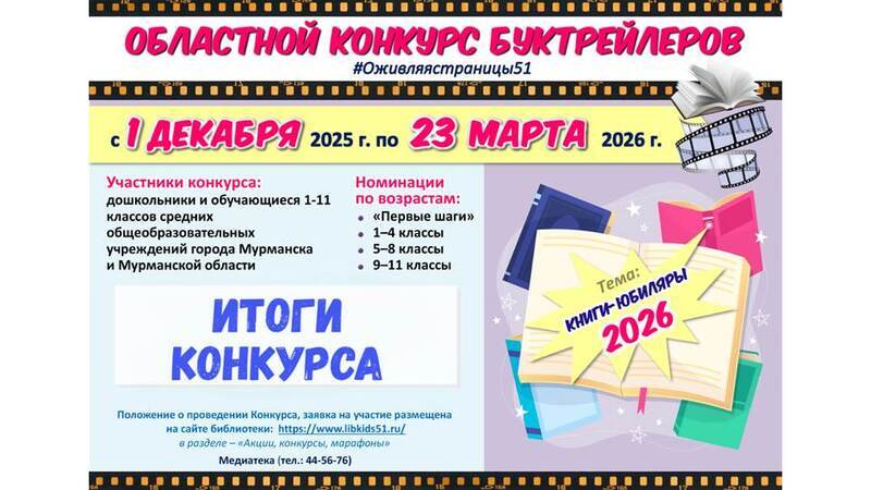 Завершился VIII Областной конкурс буктрейлеров «С юбилеем, любимая книга», и мы хотим выразить огромную признательность всем участникам. Вы не просто создавали буктрейлеры, а делали нечто большее – вдохновляли, доказав, что чтение увлекательно и современно. Благодарим всех за душевный и творческий подход к выполнению конкурсных работ.