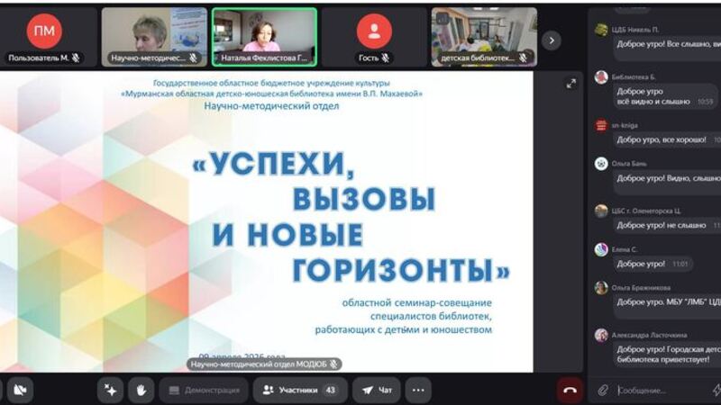 Итоги работы библиотек региона по обслуживанию детского населения в 2025 году подвела Анжелика Станиславовна Володина, заведующая научно-методическим отделом ГОБУК МОДЮБ. Прозвучал анализ деятельности по основным направлениям, представлены интересные практики коллег. О работе библиотек с юношеством и молодежью в минувшем году рассказала Юлия Михайловна Леушина, главный методист научно-методического отдела ГОБУК МОДЮБ.
