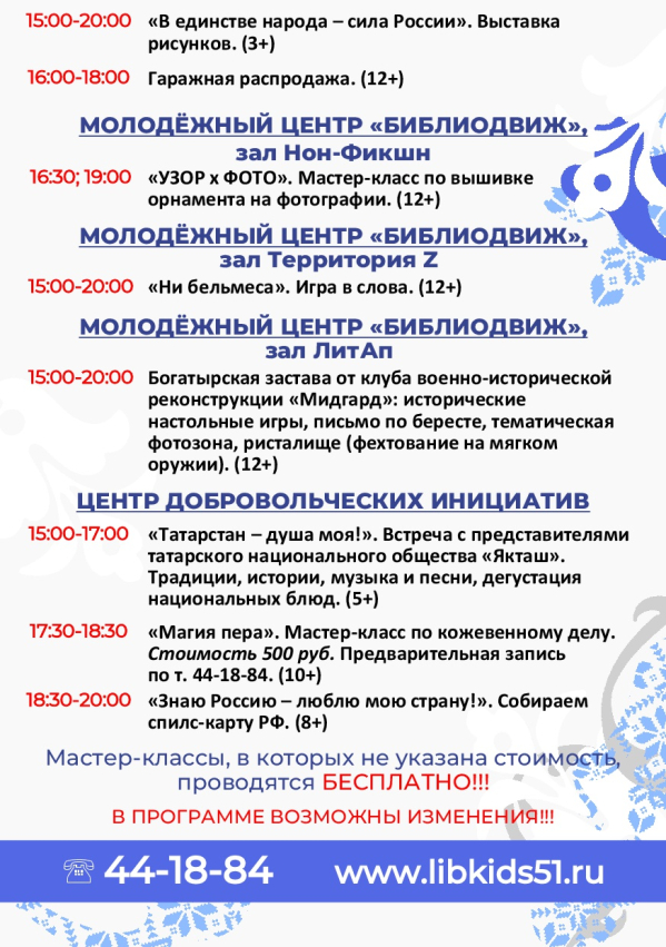 На некоторые мероприятия нужна предварительная запись. Информацию смотрите в программе «Библиосумерек».