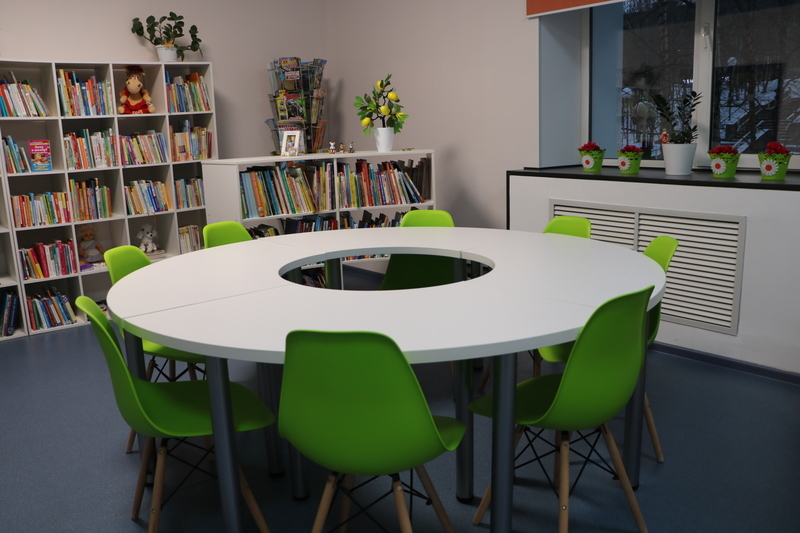 Помещение правильной квадратной формы с двустворчатой входной дверью. Вместимость — до 12 человек. В помещении есть стационарные стеллажи с книгами, 1 кресло, посредине круглый стол и 8 стульев. Есть возможность поставить флипчарт, мобильную стойку с книгами и/или другой продукцией, а также подключить дополнительное оборудование.