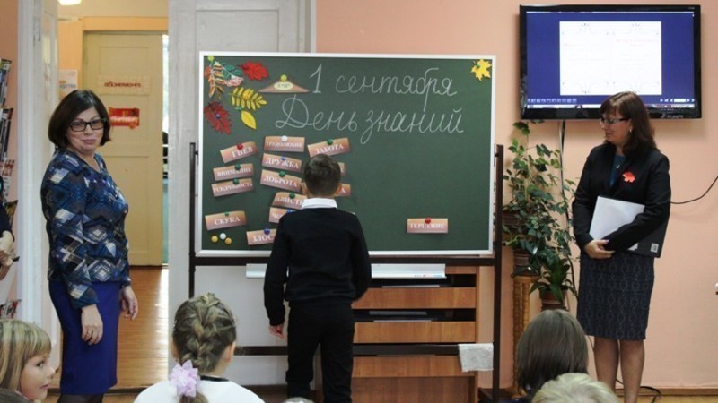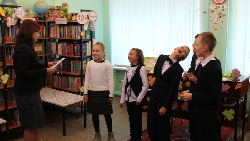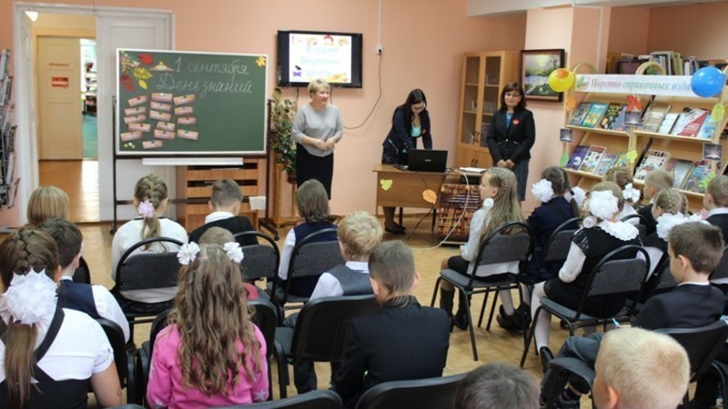 Сотрудники поздравили всех с праздником и рассказали о том, в какое время начинается учебный год в разных странах мира. Затем ребята дали обещание своей учительнице быть прилежными учениками и построили свою собственную школу из символических кирпичиков. После этого, разделившись на команды и получив «дневники», мальчишки и девчонки отправились на необычные уроки, подготовленные библиотекарями. На «уроке Почтения» дети выполняли задания на логику; на «уроке Рискования» не побоялись высказать свое мнение и поиграли в игру «Быстрый карандаш»; на «уроке Хохотания» удачно сдали экзамен, показав спектакль-экспромт «Курочка Ряба»; на «уроке Гадатики» погадали, о том, что их ждет в новом учебном году.