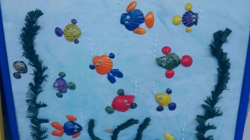 Впечатлений было так много, что на коррекционных занятиях по развитию осязания и мелкой моторики хозяйка коллекции ракушек, тифлопедагог Шишкина Н.М., вместе со слабовидящими ребятами 2 «А», 7 «А», 5 «Е», 4 «А» классов и с ученицей Приданниковой Катей продолжили «подводную» тему. Своими руками они создали яркие творческие работы из экологически чистых материалов, в т.ч. из ракушек и морского песка. Так библиотечная выставка переросла в настоящий проект.