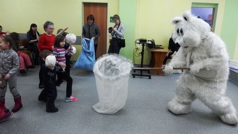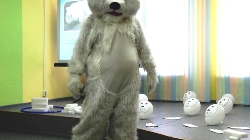 Всеобщий восторг вызвало появление в библиотеке героя праздника – Белого медведя. Ребятишки вволю с ним повеселились, играли в снежки, танцевали, ловили рыбу, шли по медвежьим следам, и даже спасались от нефти. После познавательно-развлекательной части мероприятия, все отправились на улицу и слепили из снега белого медведя. Он получился большой и добрый.
