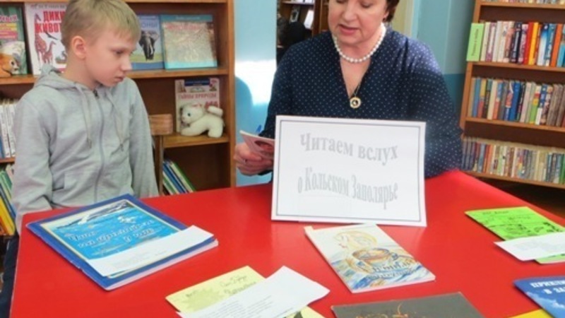 Во всех отделах библиотеки были оформлены уголки для чтения. Ребята, придя в библиотеку, смогли познакомиться с литературой о Кольском Заполярье, прочитать вслух библиотекарю и друзьям отрывок из произведений В. Смирнова, В. Маслова, Н. Блинова, Н. Колычева, О. Бундура, Н. Князева, Н. Добычиной, Л. Парфёновой и др.
