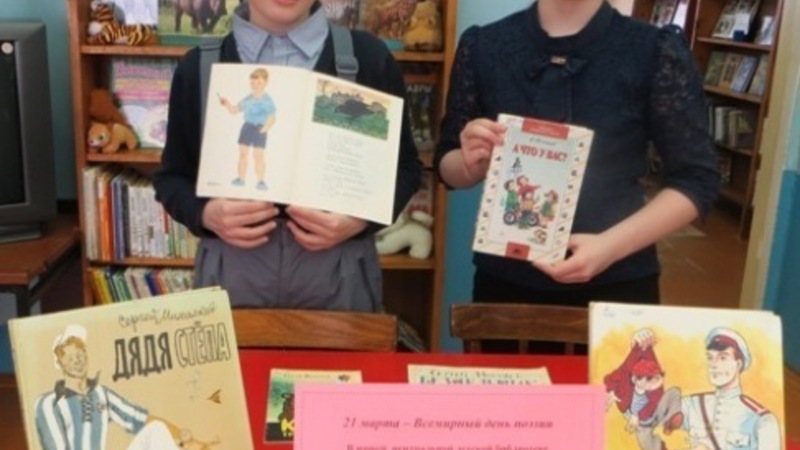 По традиции 21 марта здесь звучат стихи, словно весенняя звонкая капель! Библиотека в этот день превратилась в одну большую поэтическую площадку, посвящённую 105-летию со дня рождения Сергея Владимировича Михалкова. Были оформлены книжные выставки, где представлены все издания поэта, имеющиеся в библиотеке.