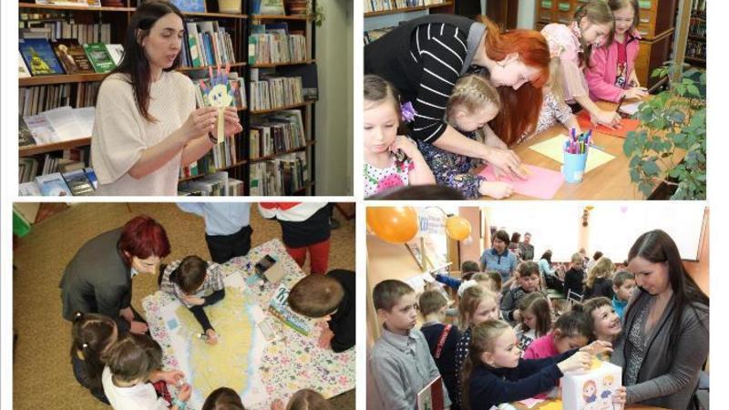 После представления все гости разделились на 3 группы и отправились в путешествие по библиотеке. На первой площадке «Книжные выборы» ребята проголосовали за самую лучшую книгу-юбиляр. На второй – «Книжный друг – закладка» сделали веселые закладки, а на третьей – «Край, в котором я живу» разместили на карте Мурманской области города, достопримечательности, животных и растения.