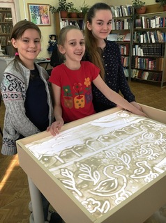 Читатели библиотеки приняли участие в сказочном вернисаже «Рисуем героев любимых книг». Рисовали иллюстрации к сказкам Андерсена не только карандашами, но и «волшебным» песком.