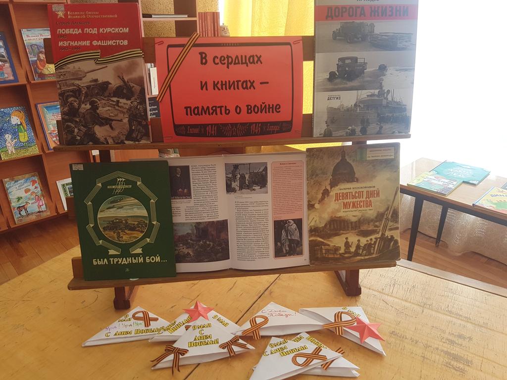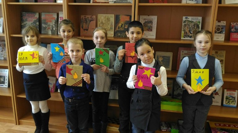 В Сафоновской городской библиотеке-филиале (Североморская ЦБС) для учащихся начальной школы прошел патриотический час «Не гаснет в памяти свеча». Библиотекарь рассказала детям о тяжелейших испытаниях, выпавших на долю нашего народа в годы войны, о тех далёких и трудных днях, о героическом подвиге защитников Родины. Патриотический час сопровождалось показом презентации и просмотром фрагмента документального фильма «Дети войны». Были оформлены: книжная выставка «Я читаю книги о войне», книжно-иллюстративная выставка «Это было в мае, на рассвете…». Для всех желающих был проведен мастер-класс по созданию фронтового письма-треугольника «Весточка в прошлое» и совместно с читателями оформлена стенгазета посвященная Дню Победы «От Советского Информбюро…».