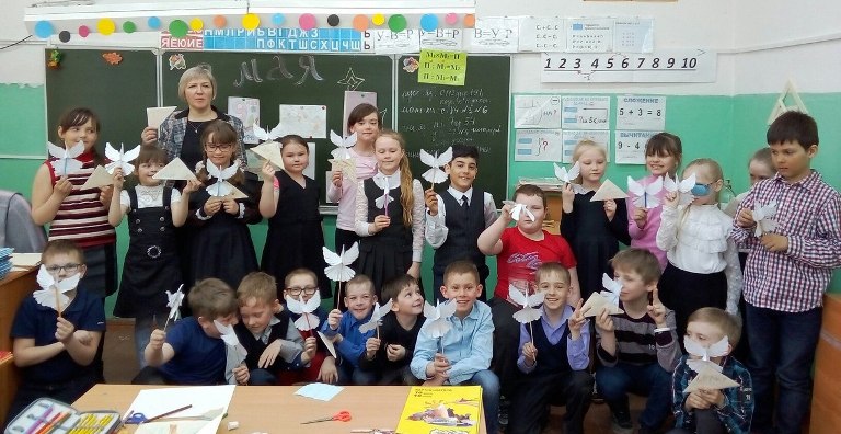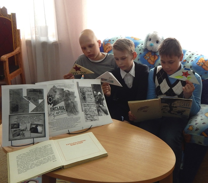 Для младших школьников состоялся мастер-класс по созданию письма-треугольника «Весточка в прошлое» и белого голубя – символа мира, которого ребята принесли 9 мая на митинг в честь Дня Победы. Библиотекарь рассказала ребятам о важности письма на фронте, и связи солдат с домом. С интересом посмотрели дети видеоролики «Письма с фронта», «Военно-полевая почта» и узнали историю написания картины «Письмо с фронта» художника Александра Ивановича Лактионова.