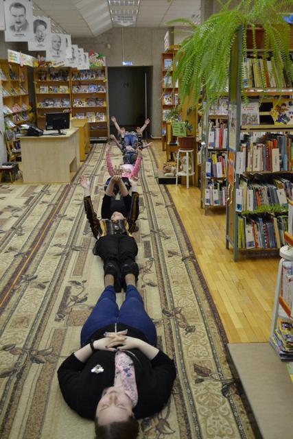 Впервые в истории библиотеки было решено измерить расстояние от младшего читального зала до старшего. Читателям предложили принять участие в Познавательном БИБЛИОметраже. В качестве измерительных приборов выступили: линейка – 90 см, книги: «Я познаю мир», «Динозавры», «Стильная девчонка» и «Энциклопедия сенсаций», шагомер, а также библиотекари и читатели. Путем интереснейших экспериментов были получены следующие результаты. Расстояние составило: по линейке – 51,75 м; по шагам: библиотекаря Анны Валерьевны – 60 шагов, читательницы Лика Цветкова – 74 шага; мелкий гусиный шаг от Андрея Кошлакова – 196 шагов.