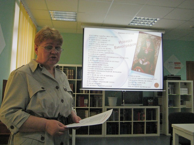 Накануне Дня славянской письменности и в рамках областной литературной акции «Наш край родной в стихах и прозе» краеведческим сектором был организован творческий вечер Надежды Большаковой, члена Союза писателей России. Для читателей города это стало настоящим событием. К встрече библиотекари подготовили электронную презентацию и книжную выставку о мурманской писательнице, рассказали о ее творчестве. Сама Надежда Павловна познакомила читателей со своими новыми книгами, в том числе со сборником воспоминаний о мурманском писателе Николае Скромном, рассказала о планах на будущее.