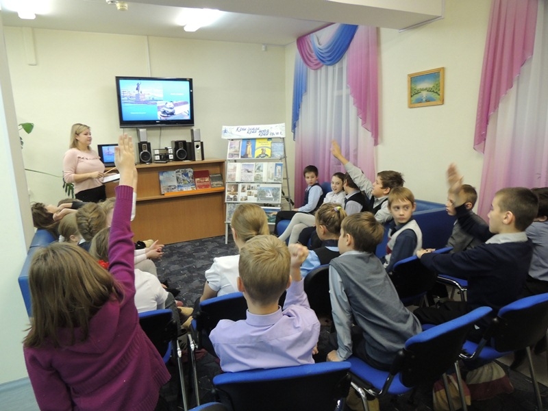Для первоклассников СОШ №13 состоялись громкие чтения «Наш удивительный северный край», где читатели познакомились с книгой Ирины Ядринцевой «Мурман, Кольские края – это родина твоя» и совершили виртуальное путешествие по Мурманской области, вспомнив символику края, населенные пункты и уникальные достопримечательности Заполярья. Четвероклассники Гимназии № 6 стали участниками краеведческой игры «Знаешь ли ты свой край?». Ребята познакомились с книгами, посвященными Мурманской области, вспомнили писателей, творчество которых посвящено нашему краю. Затем, разбившись на три команды, девчонки и мальчишки соревновались в знаниях: отмечали города и поселки на карте Мурманской области, составляли герб города Мурманска, вставляли пропущенные слова в текст о географическом положении края и отвечали на вопросы в режиме "блиц".