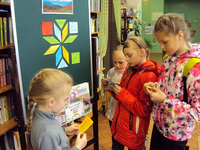 Волшебный человечек не только рассказал о своем народе, который знает все-все о северных горах, лесах, тундрах и озерах, но и расспросил ребят, любят ли они свою землю и что делают, чтобы ее сберечь. Во время путешествия школьники познакомились с изданиями о крае. Они с удовольствием читали отрывки из книг Ирины Ядринцевой «Мурман, Кольские края – это родина твоя» и «Мурманск – Арктики столица», стихи краеведческих авторов из поэтического сборника «Земля моя хибинская» и рассказы Олега Бундура из книги «У нас на крайнем севере». Проверкой знаний о природе и истории родного края для ребят стала викторина «В Заполярье я живу, своим краем дорожу», на вопросы которой читатели отвечали с удовольствием и азартом. Литературное путешествие получилось увлекательным и информационным.