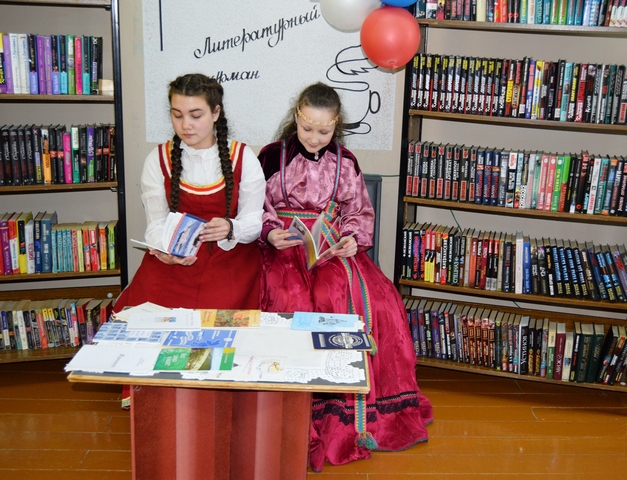В библиотеке-филиале №2 Ловозерской межпоселенческой библиотеки (С.Ловозеро) третьеклассники вслух читали произведения О.В. Вороновой, А.А. Бажанова, И. Ядринцевой. Стихи звучали особенно проникновенно на фоне выставки картин молодого художника Сальникова С.Н., в которых отражена красота нашего края.