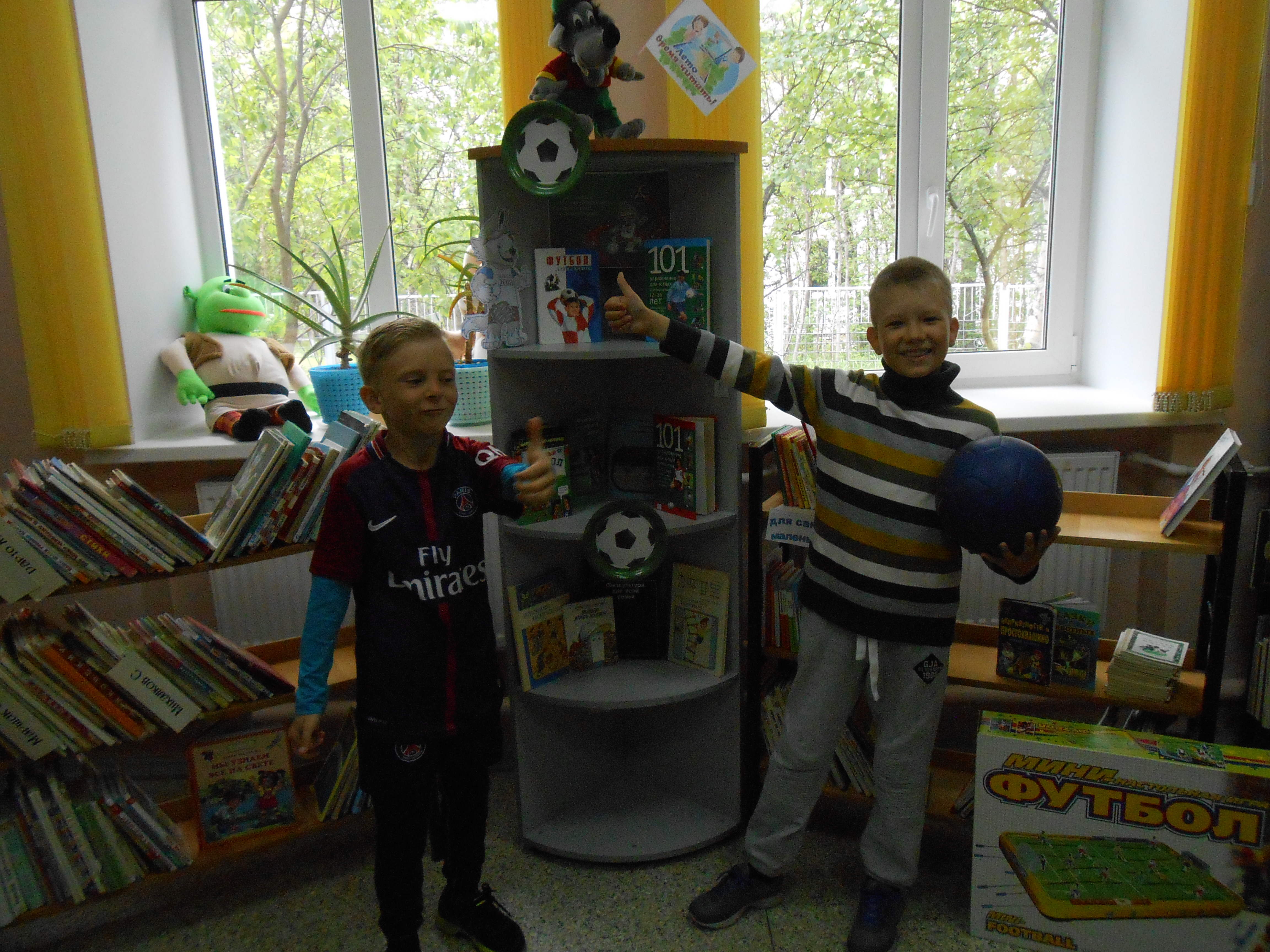 В рамках акции в библиотеке неоднократно проводилась конкурсно-игровая программа «Ура! Футбол отличная игра» для воспитанников детских садов. Благодаря программе перед ребятами открылись тайны футбола. Дети узнали, что обувь футболистов называется бутсы, гол, забитый на последних минутах первого тайма, называется «гол в раздевалку», а лучшим вратарем всех времен признан советский футболист Лев Яшин. В ходе веселой эстафеты дошкольники показали свою ловкость, учились передавать пасс, бегали с мячом наперегонки, изображали из себя кенгуру и пингвинов.