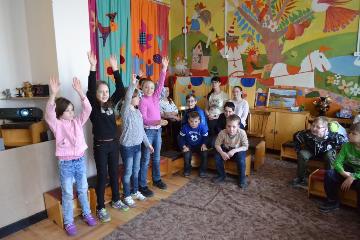 Следующий блок содержал информацию о Чемпионате мира – 2018. О количестве команд, игр, стадионов и городов, принимающих футболистов, о Забиваке – официальном талисмане игр. Ребята увидели клип с участием Забиваки и услышали гимн.