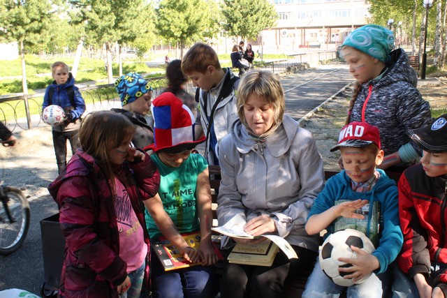 В парке на улице Пушкина прошли «Лавочки-читалочки». Ребята узнали интересные факты о футболе. Например, о том, что 19 июня на стадион «Зенит» выйдет апатитский футболист. Игрок команды «Олимп ДРОЗД-Хибины», центральный защитник Виктор Скрябин, вынесет флаг ФИФА на матче Россия – Египет.