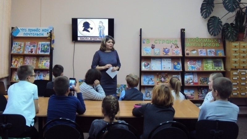 Девчонок и мальчишек пригласили в детективную школу Шерлока Холмса. Здесь они разгадывали детективный кроссворд, тренировали память и внимание, отгадывали звуки и вещества, вспоминали сказочные преступления и собирали улики.