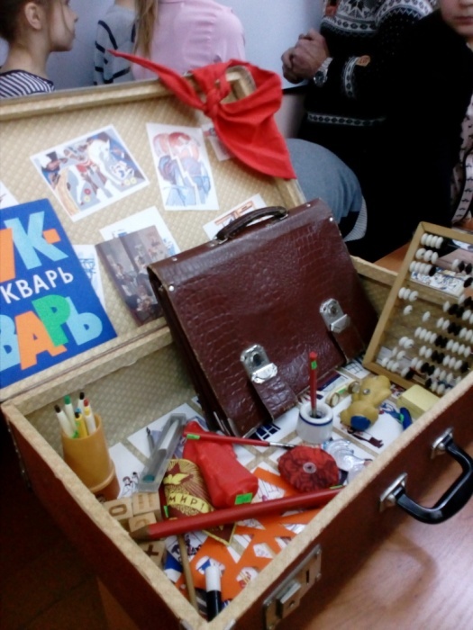 Особый восторг вызвала у четвероклассников выставка в чемодане. Ребятам было интересно посмотреть на вещи прошлых лет. Все экспонаты предоставила библиотека-литературный музей им. Н.Н.Блинова (информационный интеллект-центр филиал №4 МБУК Центральная библиотека города Мурманска).