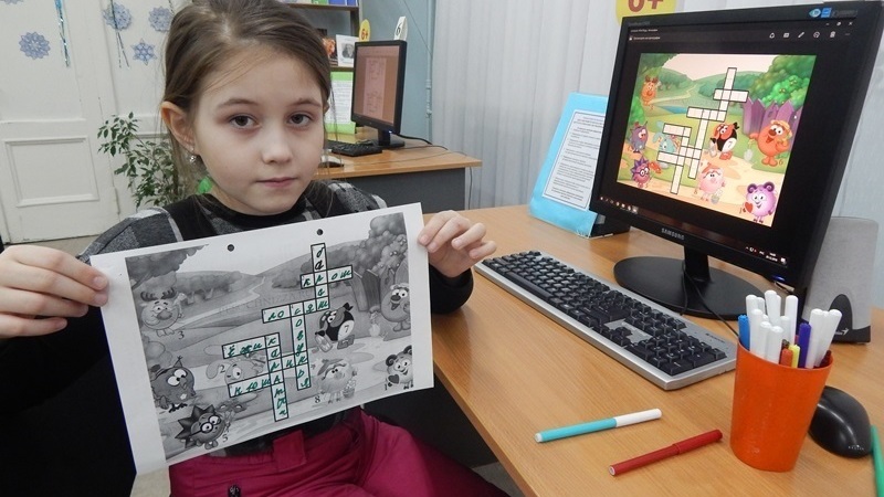 Ребятам было предложено проверить свои знания и отгадать кроссворды из журналов «Мурзилка» и «Клёпа» в электронном виде на «Детской страничке» сайта Мончегорской централизованной библиотечной системы. Дети пользовались энциклопедиями, журналами, словарями из фонда библиотеки. Разгадывая кроссворды, они вспоминали сказки, героев мультфильмов, факты из истории, юбилейные даты.