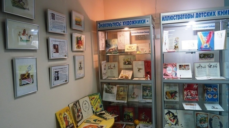 Материалы для экспозиции, развернутой в библиотеке, предоставлены А. П. Зайцевым – художником из города Апатиты, координатором проекта «Музей иллюстрации детской книги г. Апатиты» Кольского экологического центра.