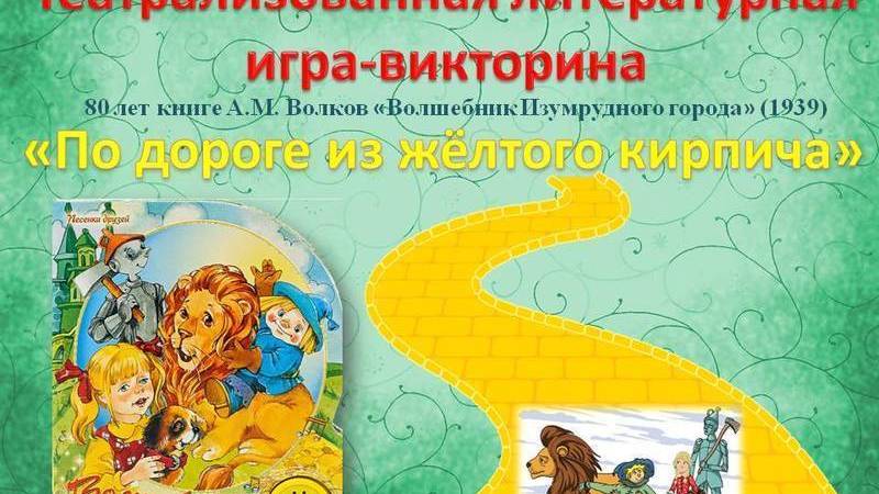 30 января сотрудники библиотеки провели театрализованную литературную игру-викторину «По дороге из жёлтого кирпича», посвященную 80-летнему юбилею книге Александра Мелентьевича Волкова «Волшебник Изумрудного города».