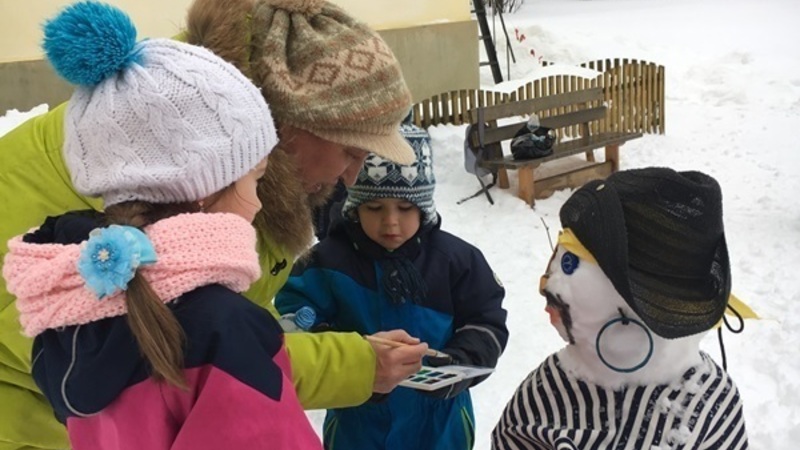 Февральская капель, отличное воскресное настроение, огромные снежные поляны – все это добавило участникам прогулки творческого задора. Ребята старательно катали снежные шары и превращали их в удивительных снеговиков – Пирата, Лыжника, Клоуна. Были здесь и снеговички – закадычные друзья и забавный Корреспондент.