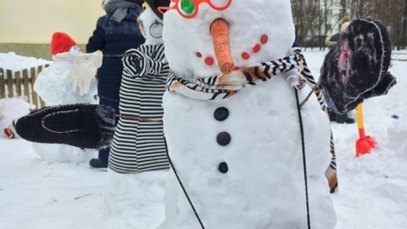 Веселая компания: папы и мамы с детьми, бабушки с внуками – все, кто не захотел сидеть дома в теплый зимний день, лепили чудных снеговиков прямо в Литературном парке Центральной детской библиотеки.