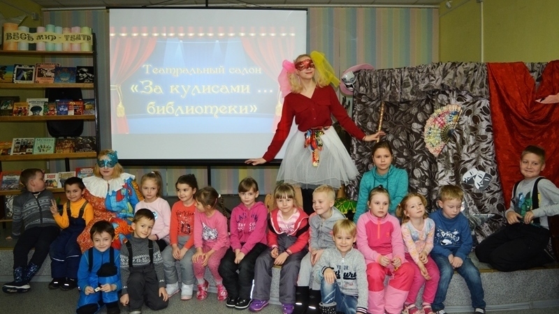Приглушенный свет, сцена и театральный занавес на экране проектора, театральная ширма, маски и костюмы – все это помогло гостям салона ощутить атмосферу театра, едва они переступили порог Литературной гостиной библиотеки. Дети и родители заняли свои места, и началось необыкновенное театральное путешествие!