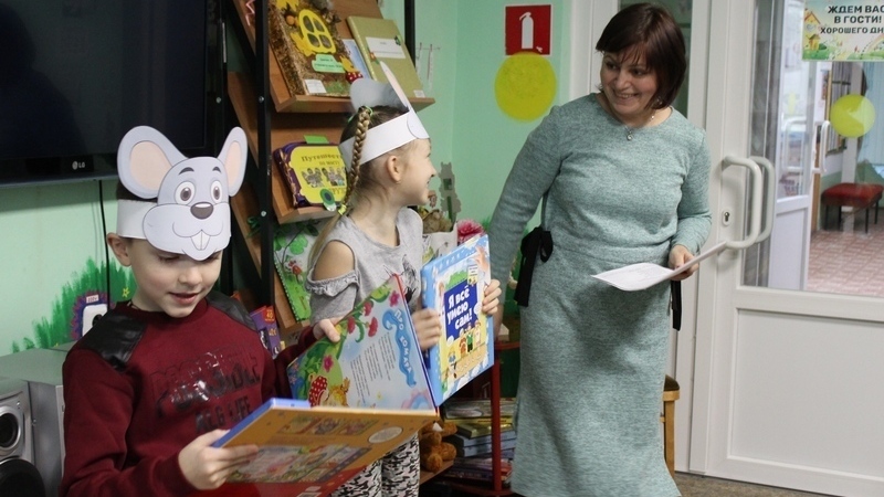 Вначале маленькие читатели «превратились в мышек», а затем они вместе с родителями и мышкой Трикси из сказки Э. Мозера «Мышка в космосе» отправились в космическое путешествие на планету Мышей, где познакомились с библиотечной мышкой Нюрой.