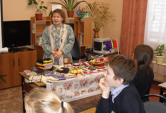 Для учащихся 3 класса был проведен краеведческий калейдоскоп «Саамские узоры». Изделия из меха оленя, резьба по дереву, вышивка бисером прославили наших саамов далеко за пределами России. Ребята узнали много интересного о саамских самобытных узорах из презентации «Искусство орнамента в декоративно-прикладном творчестве саамов Кольского полуострова».