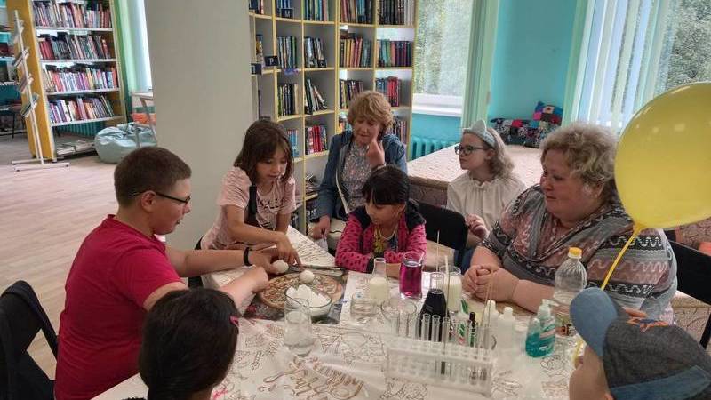 В зале интеллектуального досуга «Фокус» был настоящий ажиотаж! Художник Мария Семёновых учила ребятишек нестандартным техникам рисования: творить с помощью красок, губок для посуды, трафаретов и объединять все это в сюжеты.