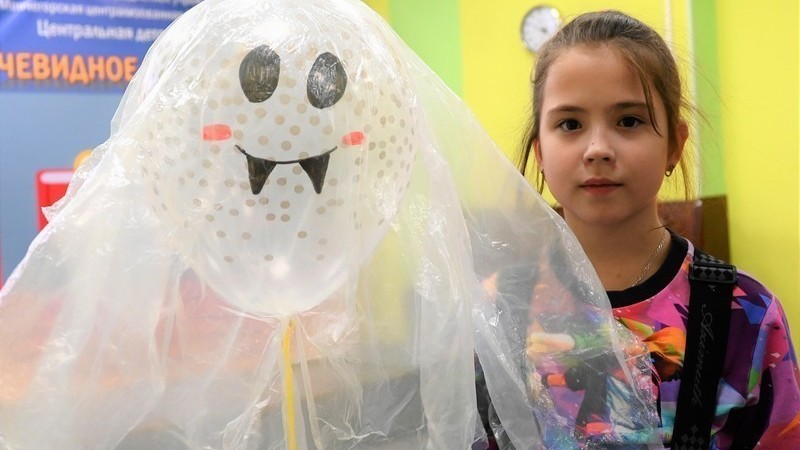 В мастерской зала «Фокус» остатки картонных упаковок, пятилитровая пластиковая бутыль и белые бумажные оборотки стали крыльями, телом и перьями невероятно впечатляющей Полярной совы. Привидения из воздушных шариков и кусков строительной пленки получились легкими, прозрачными и парящими, как и полагается привидениям.