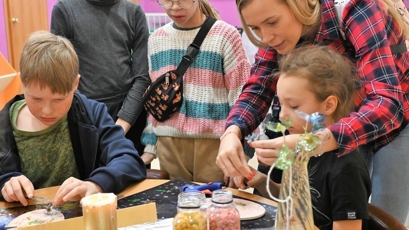 На мастер-классе «Преображение грустного стула» старые деревянные стулья, преданные забвению в запасниках библиотеки, обрели вторую жизнь, раскрасившись и украсившись яркими зайцами и котами. Участники мастер-классов «Чудо длинношеее» и «Цветы из пластмассы» взяли на вооружение пластмассовые бутылки и сотворили из них очаровательного Жирафа и нежные колечки и браслетики. Старые китайские фонарики и упаковочная пленка стали разноцветными медузами, а пластиковые крышки – потрясающими панно "Белка" и "Котенок Гав", созданными при участии волонтеров Комбината добра Кольской горно-металлургической компании.