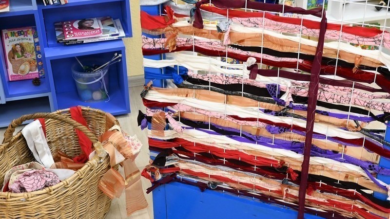 Фотозона «Лоскутные хитросплетения» стала в данном случае имитацией полотна ткацкого станка – ребята, занимаясь переплетением и завязывая узелки, «окунулись» в прошлое своих прабабушек, умевших ткать из лоскутков уютные домашние половички.