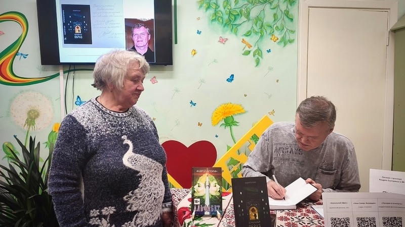 Некоторые гости встречи пришли с книгами писателя, кое-кто уже с новой изданной. Задавали различные вопросы не только о самом Андрее Буторине, а также и его творчестве "в общем" и, конечно, конкретно по новому роману. Коржук Раиса Николаевна – читательница Экологической библиотеки за лучший вопрос, который был посвящен детству Андрея Буторина, получила в подарок новую книгу, подписанную автором. Кстати, было очень приятно, что одна из почитательниц творчества Андрея Буторина приехала на мероприятие из города Полярные Зори. Приятные слова в адрес гостя сказала Галина Александровна Березкина – учительница, которая учила Андрея в младших классах.
