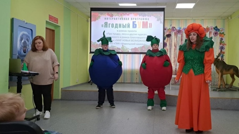 Интерактивная программа с таким названием стала настоящим театрализованным праздником для девочек, мальчиков, мам, бабушек и пап! В гости к читателям пожаловали Черника, Брусника и Царевна Морошка. Оказывается, визит Царевны Морошки неслучаен, ведь Царевна в июле отмечает день рождения, к которому активно готовится и контролирует цветение северных ягод на Кольском полуострове. Маленькие северяне на программе успешно разобрались с видами ягод, которые растут в Мурманской области. В играх с гостьями праздника дети успели попрыгать по болотным кочкам, нарисовали замечательный ягодный пирог, сложили ягодные паззлы и мастерски рассортировали ягодные шарики.